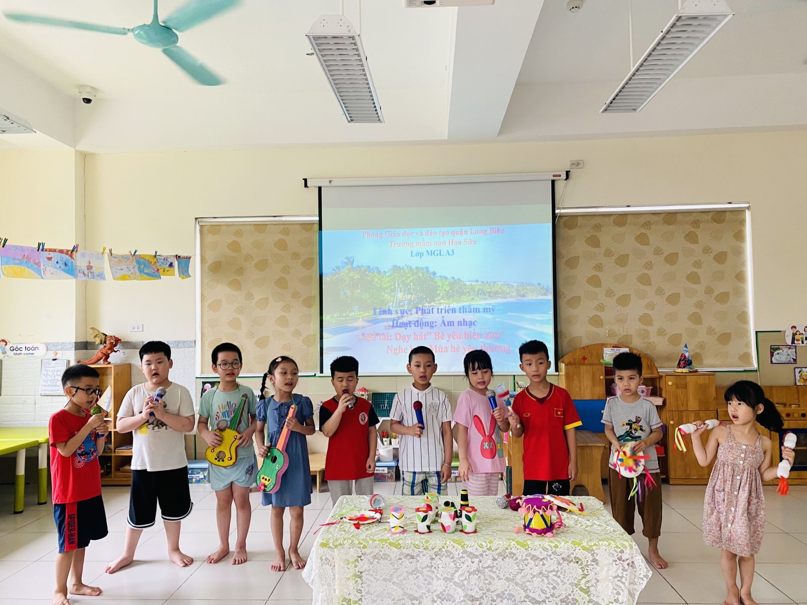 Hoạt động âm nhạc là giáo dục tình cảm đạo đức, thẩm mỹ cho trẻ. Hoạt động âm nhạc hình thành cho trẻ lòng yêu thiên nhiên, tổ quốc, tình yêu thương con người. Mặt khác, gần 1 năm qua trẻ nghỉ dịch ở nhà không được tiếp xúc nhiều với các hoạt động âm nhạc theo lứa tuổi. Nắm bắt được điều đó, các cô giáo lớp MGL A3 thường xuyên tổ chức các trò chơi âm nhạc, dạy trẻ những bài hát theo chủ đề, dạy trẻ vận động theo tiết tấu…