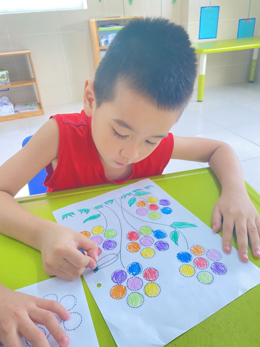 Hiểu được điều đó nên trong quá trình trẻ học tại mầm non các cô giáo mầm non không ngừng tổ chức các hoạt động để rèn luyện, nâng cao khả năng cầm bút của trẻ thông qua các hoạt động hàng ngày như: Tô màu tranh vẽ hay tập tô các chữ cái, chữ số… Với phương châm rèn trẻ cầm bút đúng cách ngồi đúng tư thế ngay từ đầu để khi trẻ vào lớp 1 sẽ không gặp nhiều khó khăn và trở ngại. Giúp trẻ tiếp thu kiến thức một cách có hiệu quả.