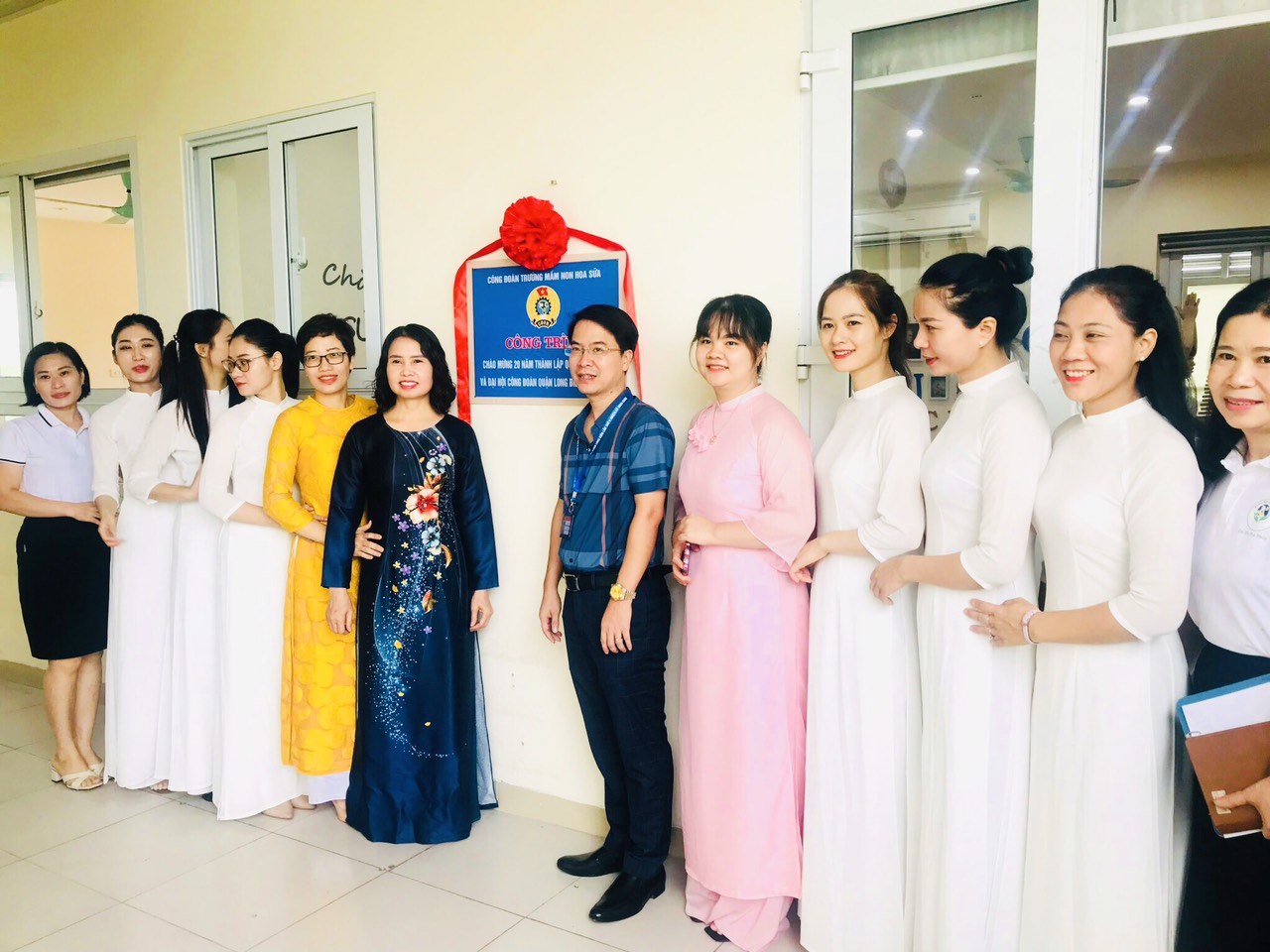 !important;Thực hiện kế hoạch số 32/KH-LĐLĐ ngày 21/8/2023 của LĐLĐ quận Long Biên về phát động đợt thi đua cao điểm, phấn đấu lập thành tích chào mừng kỷ niệm 20 năm Ngày thành lập quận Long Biên (06/11/2003- 06/11/2023), sáng ngày 12/09/2023, công đoàn trường Mầm non Hoa Sữa đã phối hợp với chính quyền tổ chức khánh thành công trình “Phòng Yoga công đoàn" và "Phòng thư giãn công đoàn" hướng tới chào mừng kỷ niệm 20 năm Ngày thành lập quận Long Biên (06/11/2003- 06/11/2023)