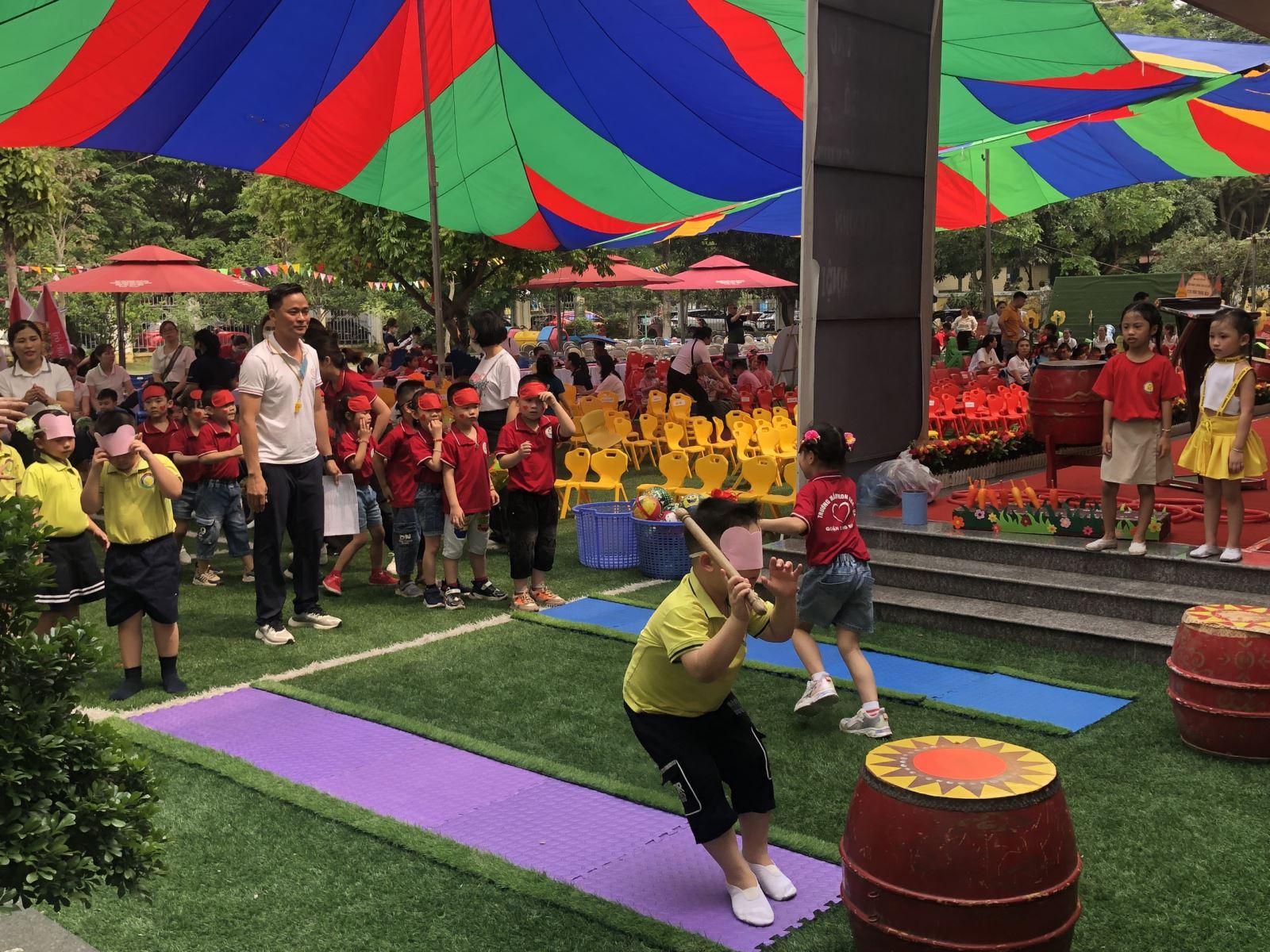 Các trường tham gia Liên hoan với ba nội dung “Rung chuông vàng”, “Giao lưu trò chơi vận động”, "Thi vẽ tranh". Kết quả phần thi "Giao lưu trò chơi vận động”, các bé trường MN Hoa Sữa giao lưu với trường MN Giang Biên trong trò chơi “Bịt mắt đánh trống” và dành giải Nhì.