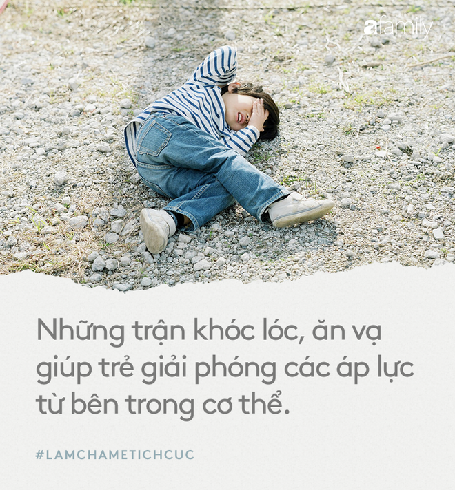 Những cơn khóc lóc, mè nheo, ăn vạ của trẻ thường khiến bố mẹ mất kiên nhẫn, thậm chí bất lực hoặc phát điên. Thế nhưng, những trận khóc lóc giúp trẻ giải phóng các áp lực từ bên trong cơ thể một cách hiệu quả, bởi vì trong nước mắt có chứa hoóc-môn cortisol, một hoóc-môn vô cùng quan trọng, được xem là hoóc-môn chống căng thẳng. Quy trình ăn vạ thường gặp của trẻ có thể là: đòi hỏi, tức giận, thất vọng, phản kháng, gào khóc, rên rỉ... và bạn có thể mất kiên nhẫn với con ở bất cứ thời điểm nào trong chuỗi hành động này, vì thế, hãy luôn tự nhắc mình rằng, "rồi thì cơn thịnh nộ của con cũng sẽ trôi qua, con đang cố gắng tự xử lý cảm xúc để cảm thấy dễ chịu hơn mà thôi", sự bình tĩnh sẽ giúp bạn thấu hiểu, kiên nhẫn chờ đợi và không can thiệp để con trải qua trọn vẹn một quy trình cảm xúc từ đầu đến cuối của chúng.