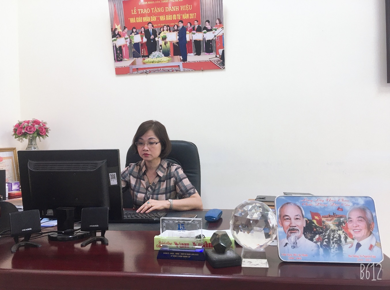 Là Hiệu trưởng nhà trường, cô luôn sát sao và tận tụy trong công việc, luôn tư vấn, chỉ bảo và hướng dẫn cho giáo viên từ soạn bài, giáo án đến tác phong sư phạm trong mọi hoạt động.