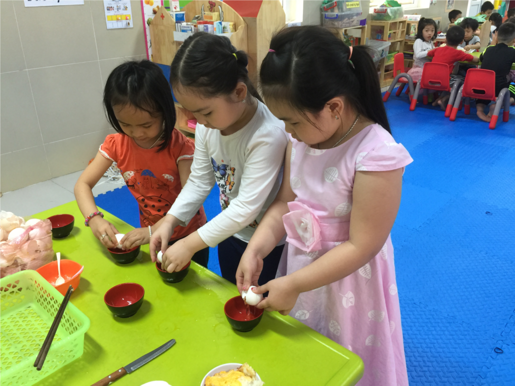 các cô giáo hướng dẫn các con thực hiện. Tuy nhiên để chuẩn bị bữa ăn sáng cho