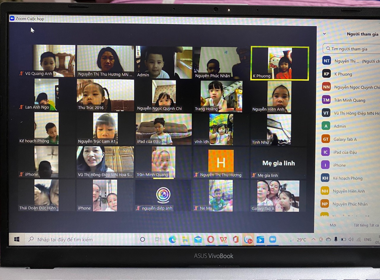 Đó là những câu hát mà bạn nhỏ nào cũng biết và được hát trong ngày khai trường. Nhưng ngày khai trường năm nay thật khác. Do dịch bệnh Covid mà cô và các bạn không đến trường được, song "Dừng đến trường nhưng không dừng học", sáng nay, cô và các bạn đã dự khai giảng trên truyền hình sau đó vào zoom của lớp để làm quen với cô giáo và gặp lại các bạn, được nghe thư chúc mừng năm học mới của Ban giám hiệu, xem bài giới thiệu về Trường mầm non Hoa Sữa.