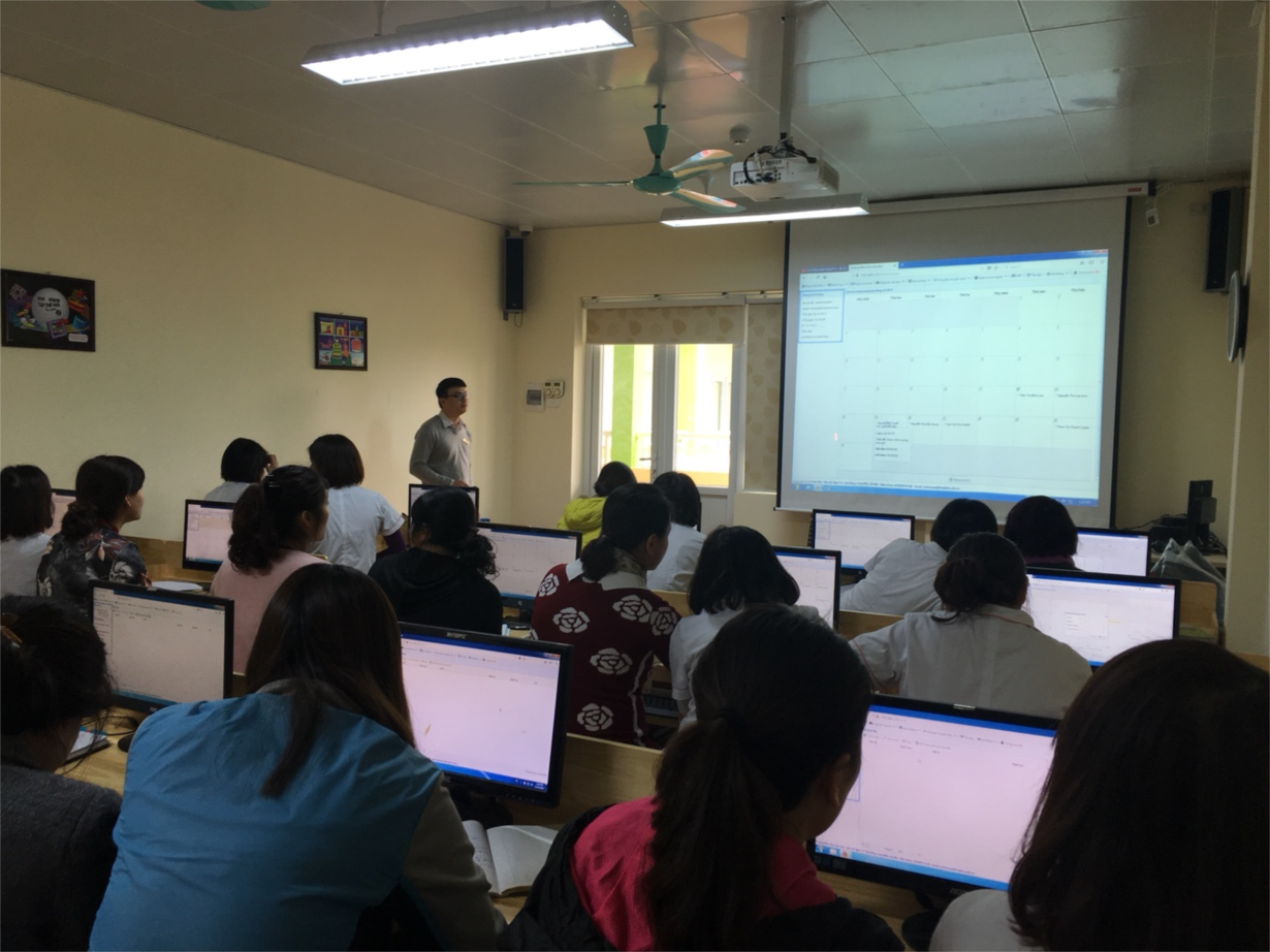 Trong thời gian 02 ngày, các cô giáo được nghe đồng chí Nguyễn Bích Nọc- phó hiệu trưởng trình bày các nội dung cơ bản và tính ưu việt của các phần mềm trong việc thiết kế bài giảng điện tử cho trẻ. Tiếp đó, đồng chí Dương Hữu Phả, nhân viên CNTT đã hướng dẫn các đồng chí giáo viên các tính năng, cách sử dụng các công cụ trong phần mềm để thiết kế bài giảng.