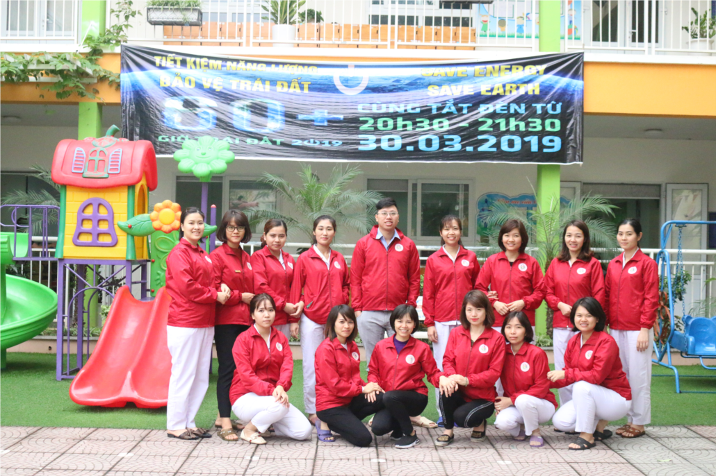 Trong các lớp học, giáo viên dạy cho trẻ hiểu ý nghĩa của Giờ trái đất, hướng dẫn các bé vẽ tranh, tạo ra các sản phẩm, tham gia các hoạt động trải nghiệm…để hưởng ứng Chiến dịch Giờ trái đất. Nhà trường kêu gọi CBGVNV và phụ huynh học sinh nâng cao ý thức trong việc sử dụng tiết kiệm nguồn năng lượng. Đặc biệt, ngày 30/3/2019 (thứ Bảy), thực hiện tắt đèn và các thiết bị điện không cần thiết trong 01 giờ từ 20h30 đến 21h30.