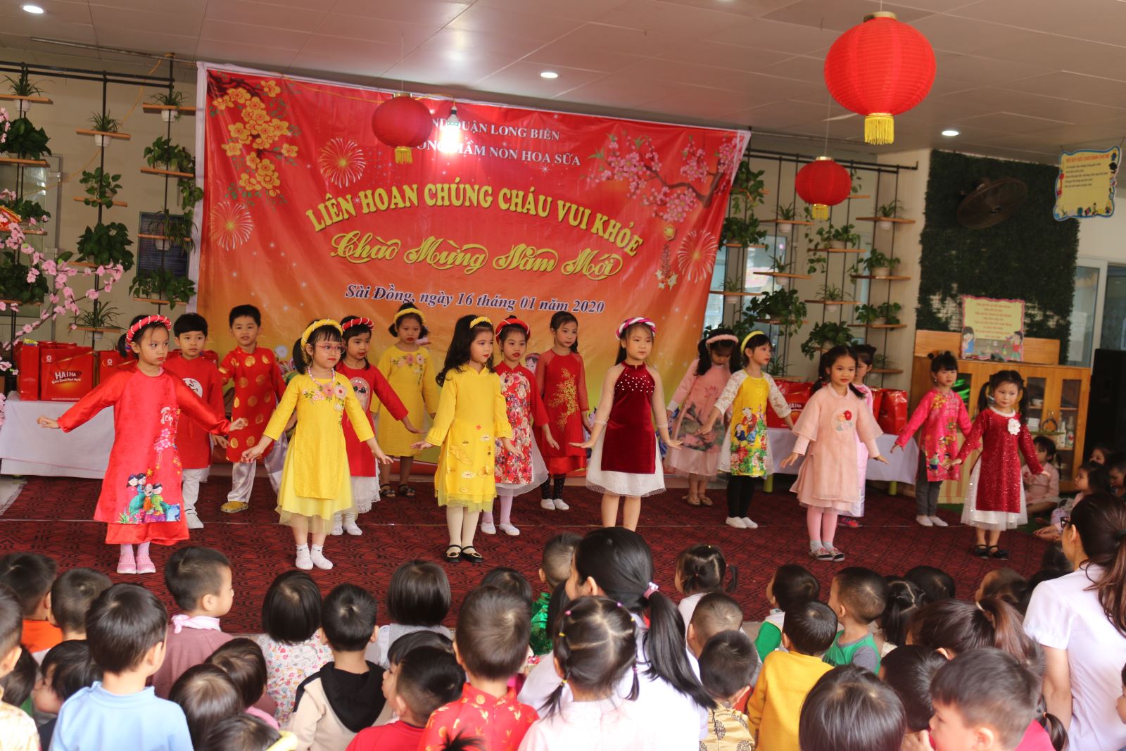Phần 1 của chương trình, các lớp đã mang đến các tiết mục nhộn nhịp, sôi động và đầy ý nghĩa với chủ đề mừng xuân, chào đón Tết. Các bé đã được hòa mình các tiết mục văn nghệ đặc sắc:
