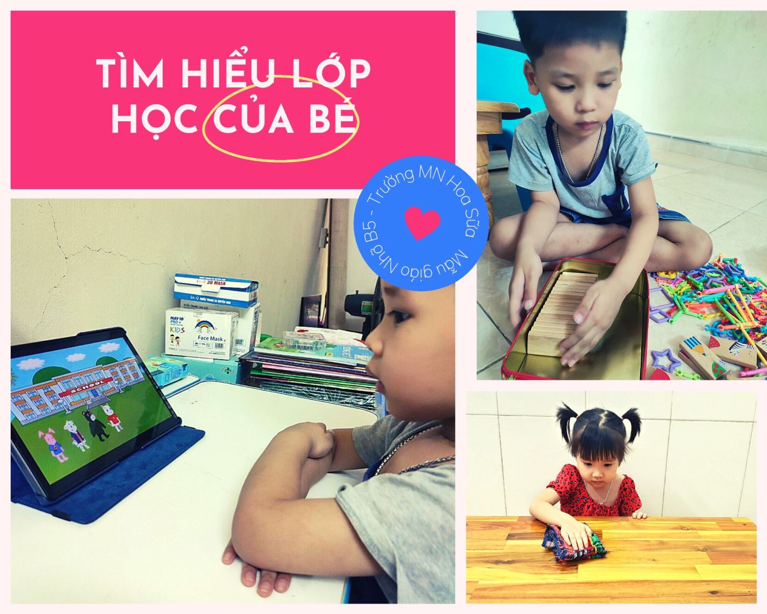 Do tình hình dịch bệnh Covid-19 vẫn đang diễn biến phức tạp, các con không thể đến trường lớp để tham gia những hoạt động học trực tiếp từ cô giáo. Hàng tuần, cô giáo đã xây dựng video bài giảng để gửi đến Quý phụ huynh hướng dẫn các con học tại nhà. Qua màn ảnh nhỏ, các bé nhìn thấy không gian lớp học của mình, biết tên cô giáo, tên các bạn, cách sắp xếp các đồ dùng học tập, đồ chơi và các góc chơi ở trong lớp. Qua bài học, các bé không chỉ biết giữ gìn lớp học sạch sẽ mà còn biết giữ cho nhà cửa của mình sạch, đẹp gọn gàng. Tuy rằng học qua video nhưng bạn nào bạn ý cũng chăm chú lắng nghe cô giáo hướng dẫn và còn biết thực hành một số hoạt động cô hướng dẫn tại nhà mình nữa đấy.