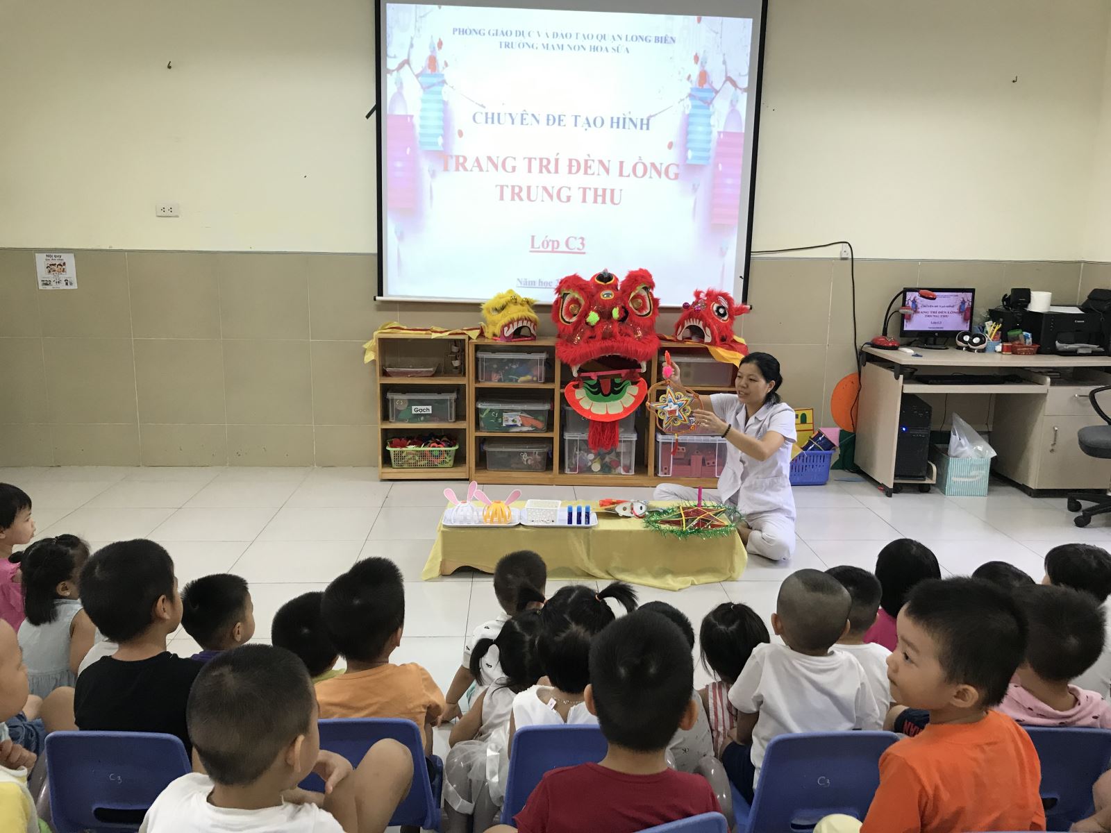Hô !important;m nay 30/110/2020, các bạn lớp mẫu giáo bé C3 được các cô giáo tổ chức trang trí đèn lồng chào đón Trung Thu.. Trước tiên các bạn nhỏ đã được quan sát cô giáo hướng dẫn trang trí đèn lồng. Từ những tờ giấy bìa màu các cô giáo và các bạn học sinh đã tạo ra những chiếc đèn lồng con thỏ xinh xắn và nhỏ nhắn. Không chỉ có thế các bạn nhỏ còn được tự tay trang trí chiếc đèn lồng của mình. Các bạn nhỏ rất vui và thích thú khi được tự tay mình tạo ra sản phảm ý nghĩa và đẹp đến vậy. các hình ngôi sao xinh xắn, rồi đến hình bông hoa, hình lá đã được đôi bàn tay khéo léo của các con trang trí cho chiếc đèn lồng thêm xinh hơn.