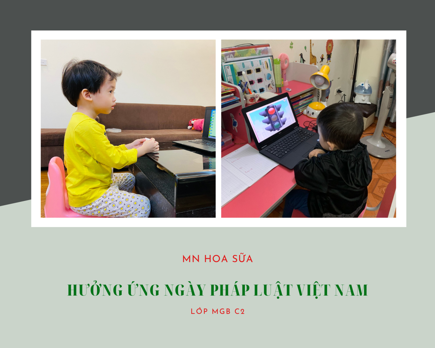 Sau đây là video câu chuyện giáo dục an toàn giao thông cho trẻ và một số hình ảnh lớp MGB C2 hưởng ứng ngày Pháp luật Việt Nam: