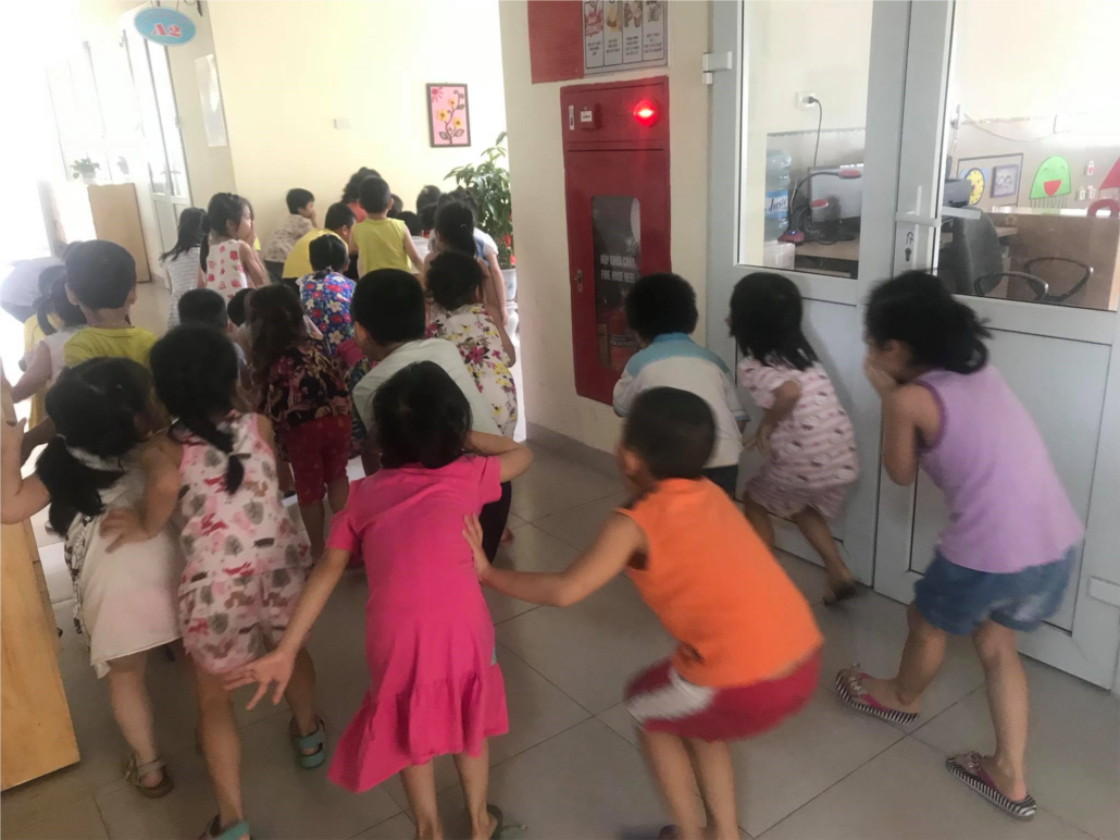 là cùng thực hành cách thoát hiểm trong phòng khi bị cháy. Mỗi bạn nhanh chóng