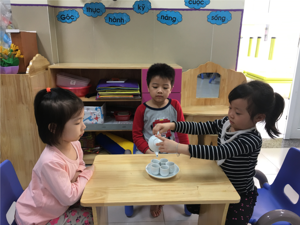 thể hiện lời nói và suy nghĩ của mình qua các vai chơi. Các góc giao lưu với