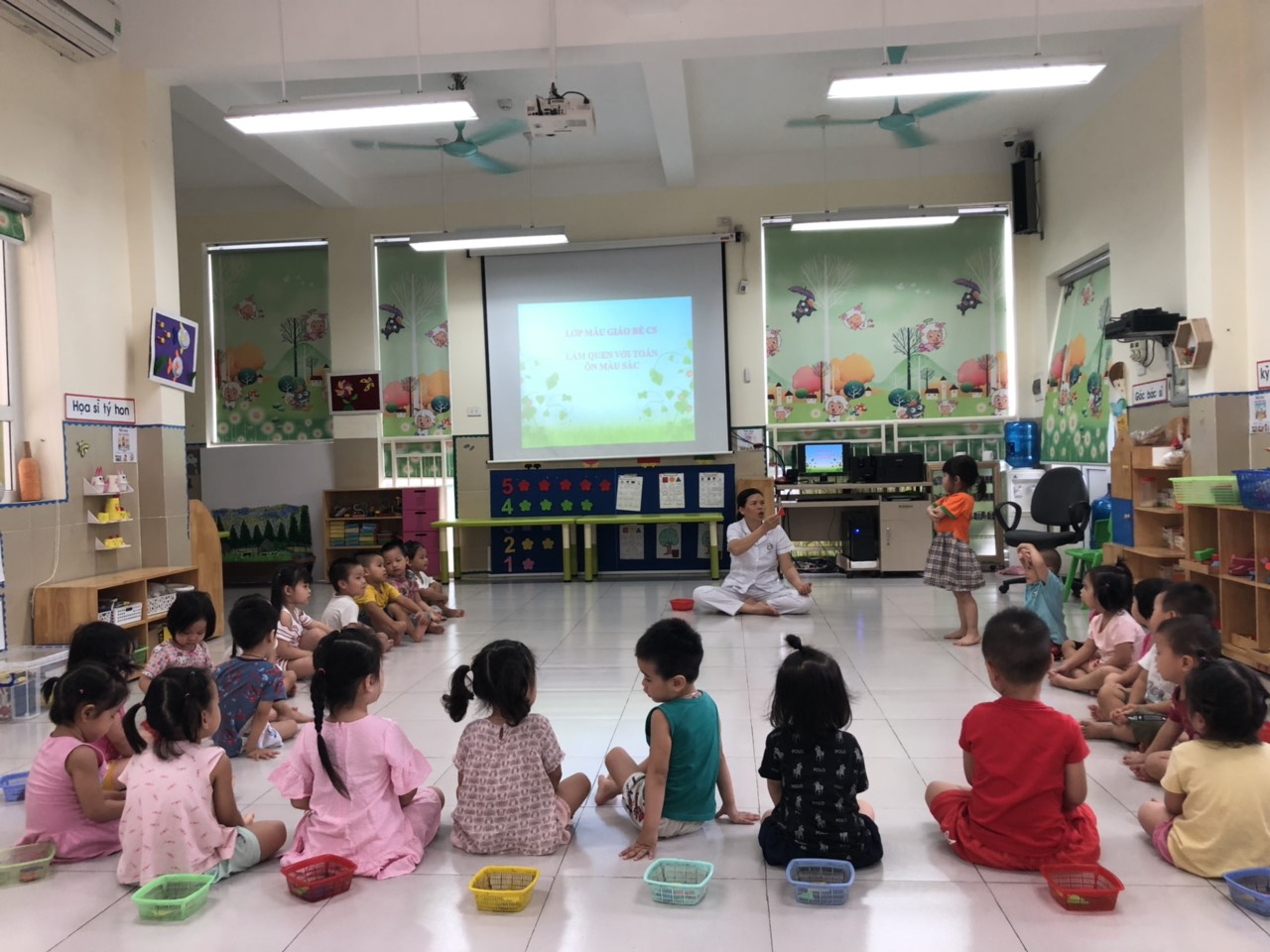 Hôm nay các bạn lớp mẫu giáo bé C5 đã được hoạt động một giờ làm quen với toán đề tài “ Ôn màu sắc”.
