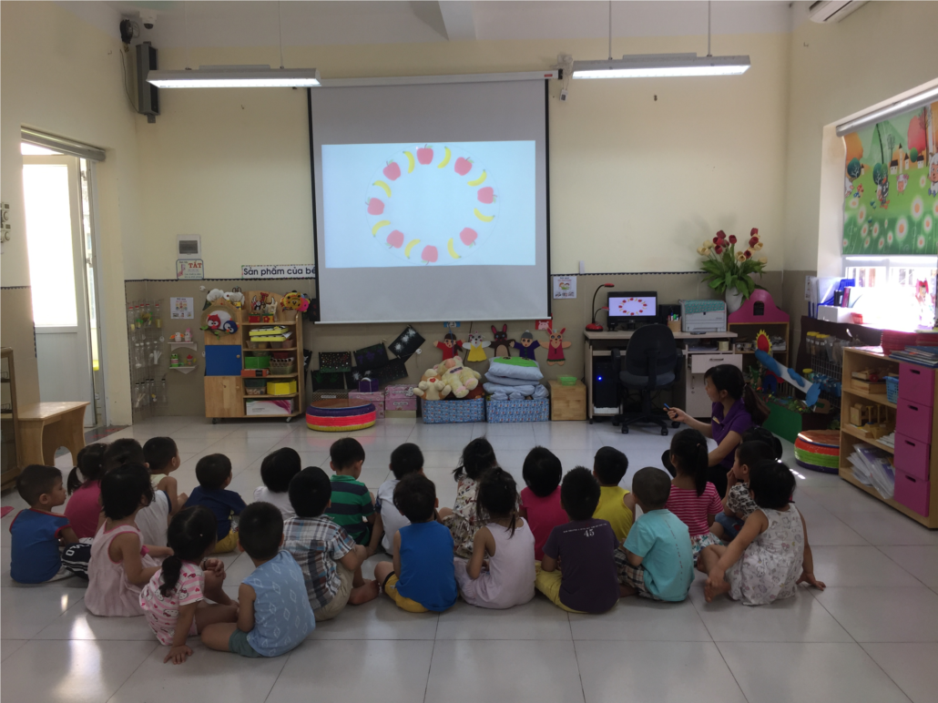 lớp mẫu giáo bé C2 đã được hoạt động một giờ làm quen với toán đề tài “ Ôn sắp