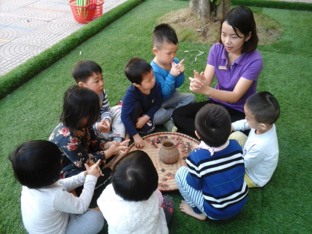 Các bạn chia thành những nhóm nhỏ, với sự gợi ý của cô giáo, các bạn đã