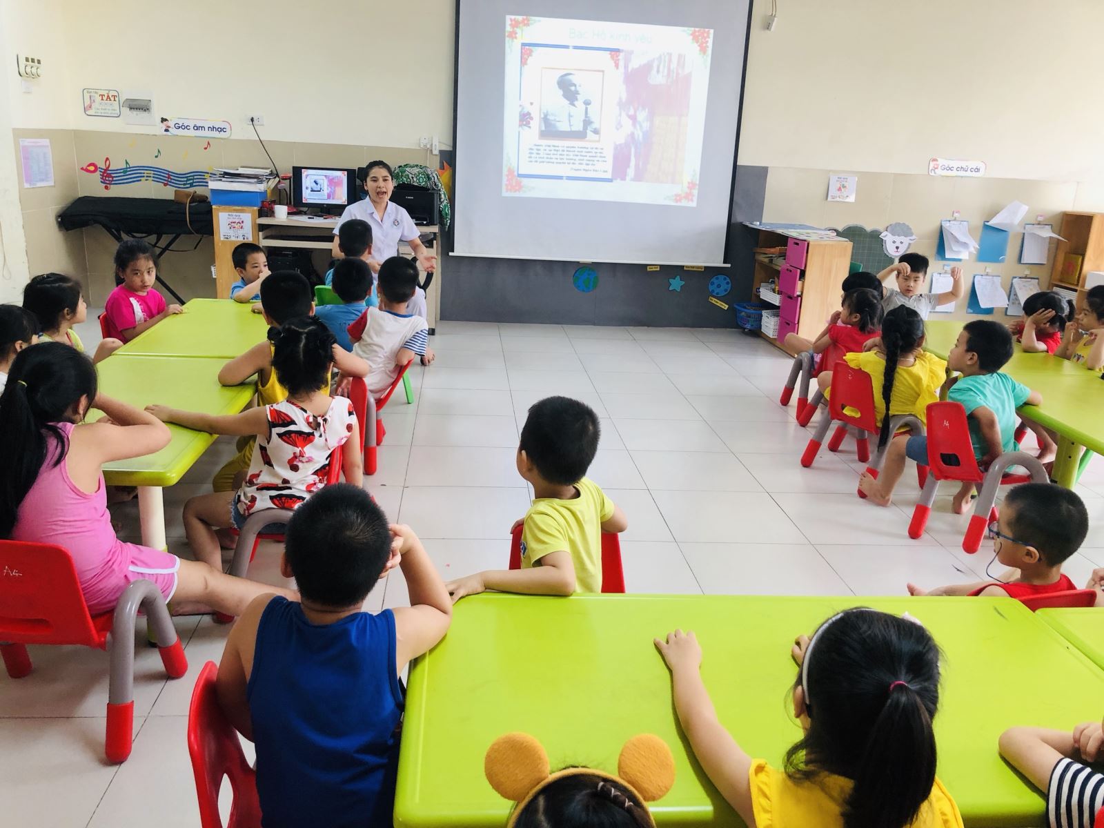 Kỷ niệm 130 năm Ngày sinh Chủ tịch Hồ Chí Minh (19/5/1890 - 19/5/2020), các bạn nhỏ trường Mẫu giáo Lớn A4 đã tham gia nhiều hoạt động để mừng sinh nhật Bác để thể hiện hiện tình yêu và lòng biết ơn đến Bác Hồ vĩ đại. Nối tiếp các hoạt động tìm hiểu về cuộc đời, vẽ tranh, các bạn nhỏ còn sưu tầm tranh ảnh, cắt dán trang trí tranh ảnh vê Bác. Từ đó giúp các con hiểu biết được công lao to lớn của Bác Hồ đối dân tộc, tình yêu thương của Bác với các cháu thiếu niên nhi đồng. Qua đó hình thành cho trẻ lòng biết ơn, kính trọng Bác Hồ, biết cố gắng chăm ngoan, học giỏi, xứng đáng là cháu ngoan của Bác