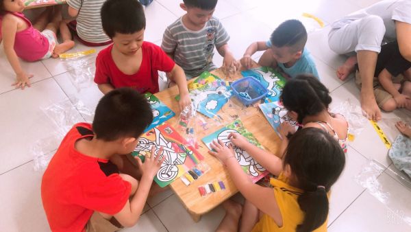Hoạt động tạo hình là một dạng hoạt động nghệ thuật nhằm giúp trẻ nhận biết và phản ánh thế giới xung quanh thông qua những hình tượng nghệ thuật. Nó giúp trẻ . Nó giúp trẻ có cơ hội tìm hiểu, nghiên cứu các đối tượng cụ thể, từ đó có thể tự hình dung xây dựng về đối tượng đó. Vai trò chính mà hoạt động tạo hình là giúp trẻ phát triển trí tuệ: tư duy, trí tưởng tượng, trí nhớ… tăng vốn kiến thức về thế giới quan cho trẻ. Hiểu được tầm quan trọng của hoạt động tạo hình đối với sự phát triển của trẻ, các cô đã luôn tìm tòi và sáng tạo ra các hoạt động tạo hình mới lạ để trẻ được trải nghiệm. Ngày 5/6 vừa qua cô và trò lớp B5 đã cùng nhau trổ tài “ Tô màu tranh cát”.