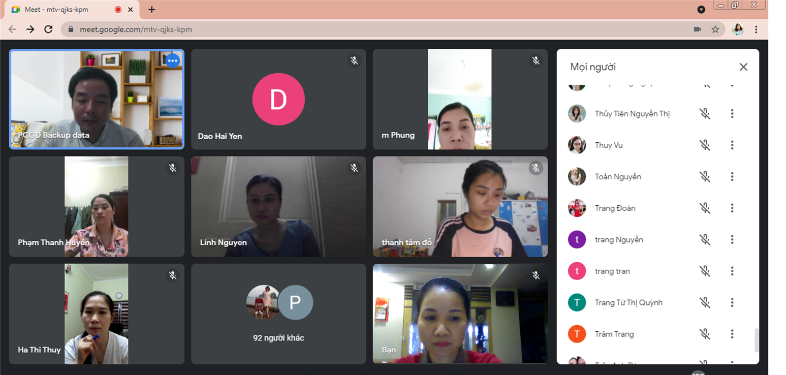 Lớp học được tổ chức theo hình thức trực tuyến thông qua phòng họp Google meet, với sự tham gia của Lãnh đạo,chuyên viên Phòng Giáo dục quận Long Biên và hơn 400 cán bộ - giáo viên cốt cán của các trường Mầm non trong quận.