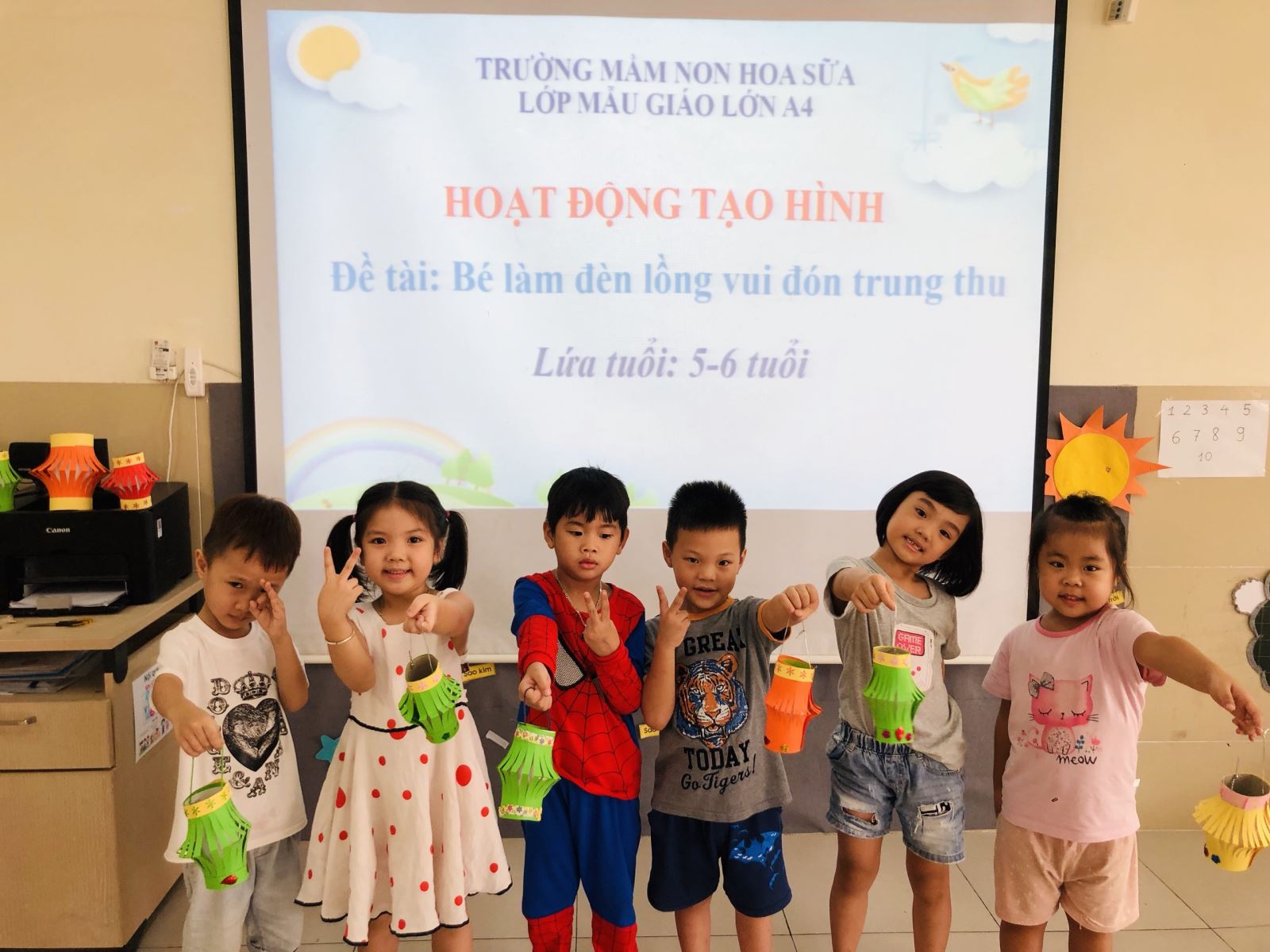 Thù !important;ng thà thùng thình trống rộn ràng ngoài đình, có con sư tử vui múa quanh vòng quanh…! Hòa chung với không khí đón tết trung thu của các bạn nhỏ trong cả nước, lớp mẫu giáo lớn A4, trường mầm non Hoa Sữa cũng háo hức làm đèn lồng chuẩn bị đón tết trung thu.