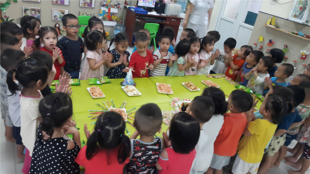 Đặc biệt hơn cả, trong buổi tiệc sinh nhật này, cô Oanh có thay mặt các cô giáo ở lớp chúc các bạn sang tuổi mới sẽ ngày càng khỏe mạnh, đáng yêu, hay ăn chóng lớn, học thật giỏi và nghe lời ông bà, bố mẹ, và các cô giáo.