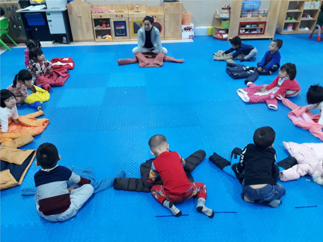 Sau đây là một số hình ảnh kỹ năng mặc áo khoác của các bé lớp C4: