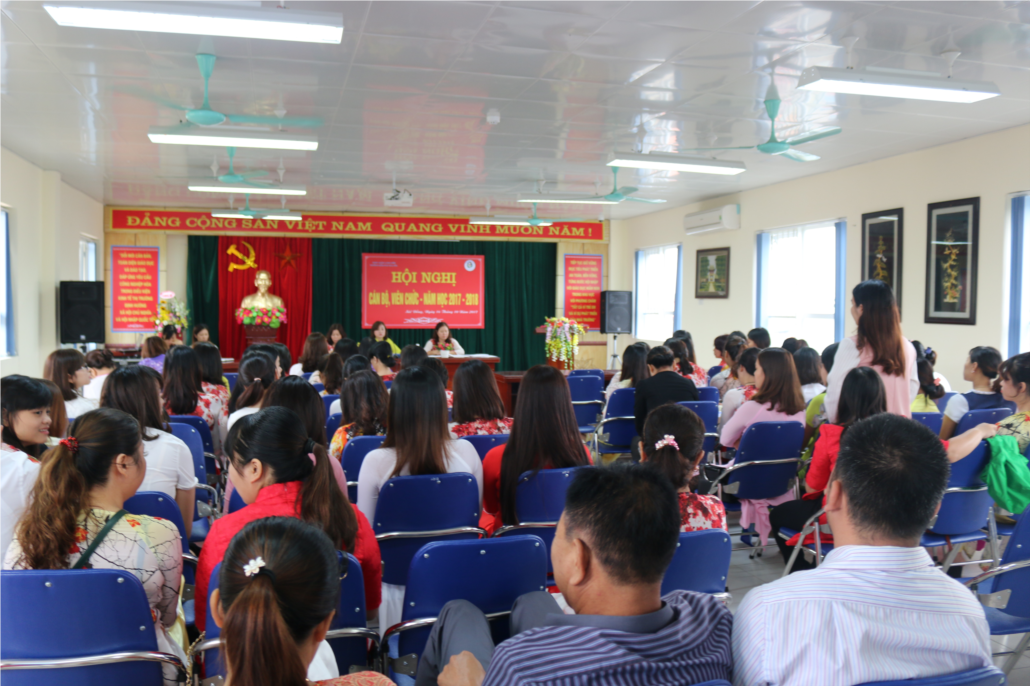 Hội nghị CBVC năm học 2017-2018 được diễn ra trong sự vui mừng,phấn khởi và hân hoan của tất cả CBGVNV nhà trường khi được đón nhận một ngôi trường mới khang trang, hiện đại với đầy đủ các điều kiện tốt nhất phục vụ các hoạt động chăm sóc giáo dục trẻ.