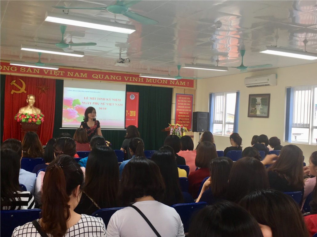 Trong không khí hân hoan chào mừng ngày thành lập Hội liên hiệp phụ nữ Việt Nam, ngày 20/10/2017, Ban chấp hành Công đoàn kết hợp với Nhà trường tổ chức buổi tọa đàm kỷ niệm 87 năm ngày thành lập Hội liên hiệp phụ nữ Việt Nam ( 20/10/1930 – 20/10/2017)