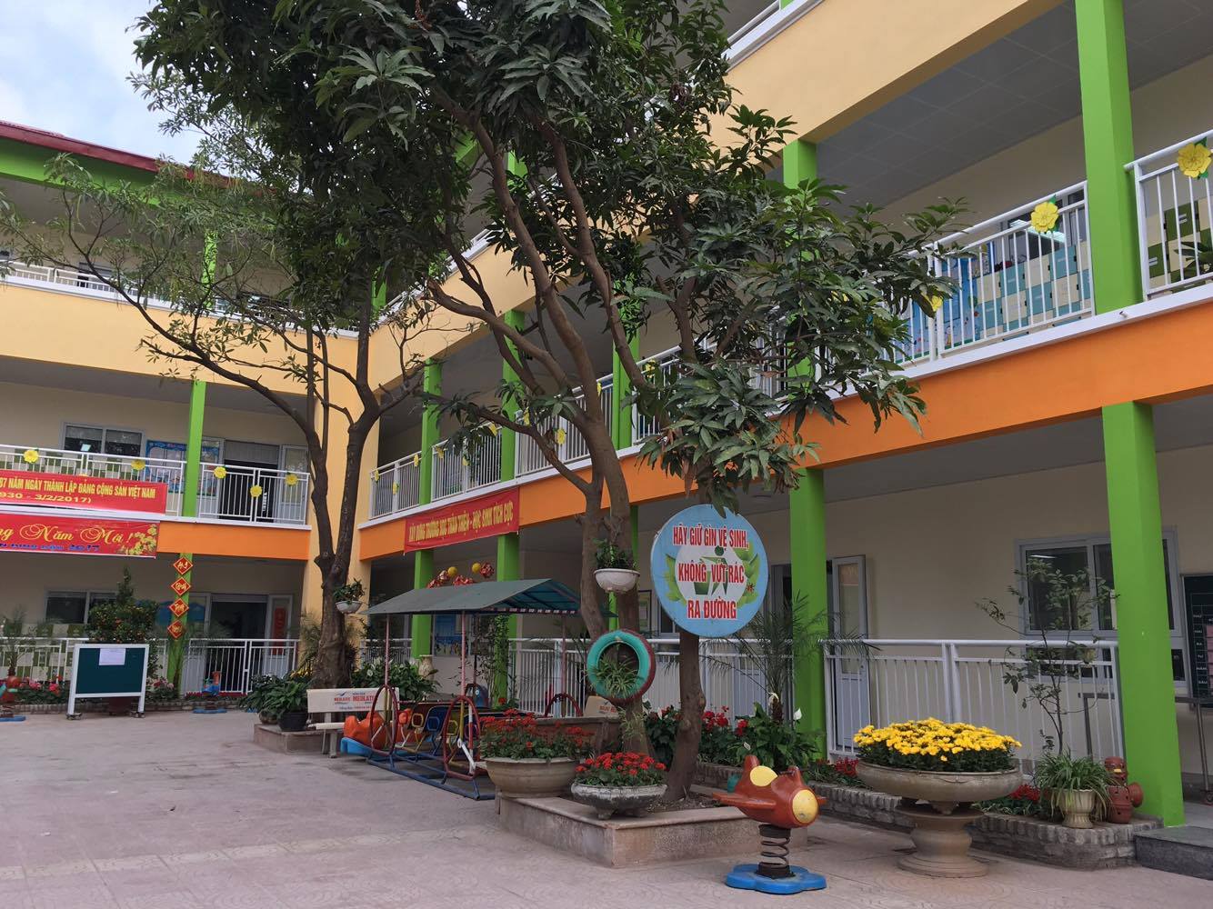 Ngay sau khi nhận bàn giao một phần công trình đã được sửa chữa lại, nhà trường đã quan tâm và chú trọng tới việc tạo không gian xanh trong khuôn viên nhà trường. Phong trào tạo môi trường sư phạm xanh đã được 100% CBGCNV và phụ huynh ủng hộ, tích cực tham gia. Hàng trăm cây cảnh đã được bổ sung và trồng tại các buồn cây trong sân trường, tại các hiên, hành lang và trong lớp. Mỗi lớp đều thực hiện xây dựng góc thiên nhiên với mục đích không chỉ đưa môi trường xanh vào lớp học, mà còn nhằm giáo dục kỹ năng, thái độ cho trẻ trong việc chăm sóc, bảo vệ môi trường.