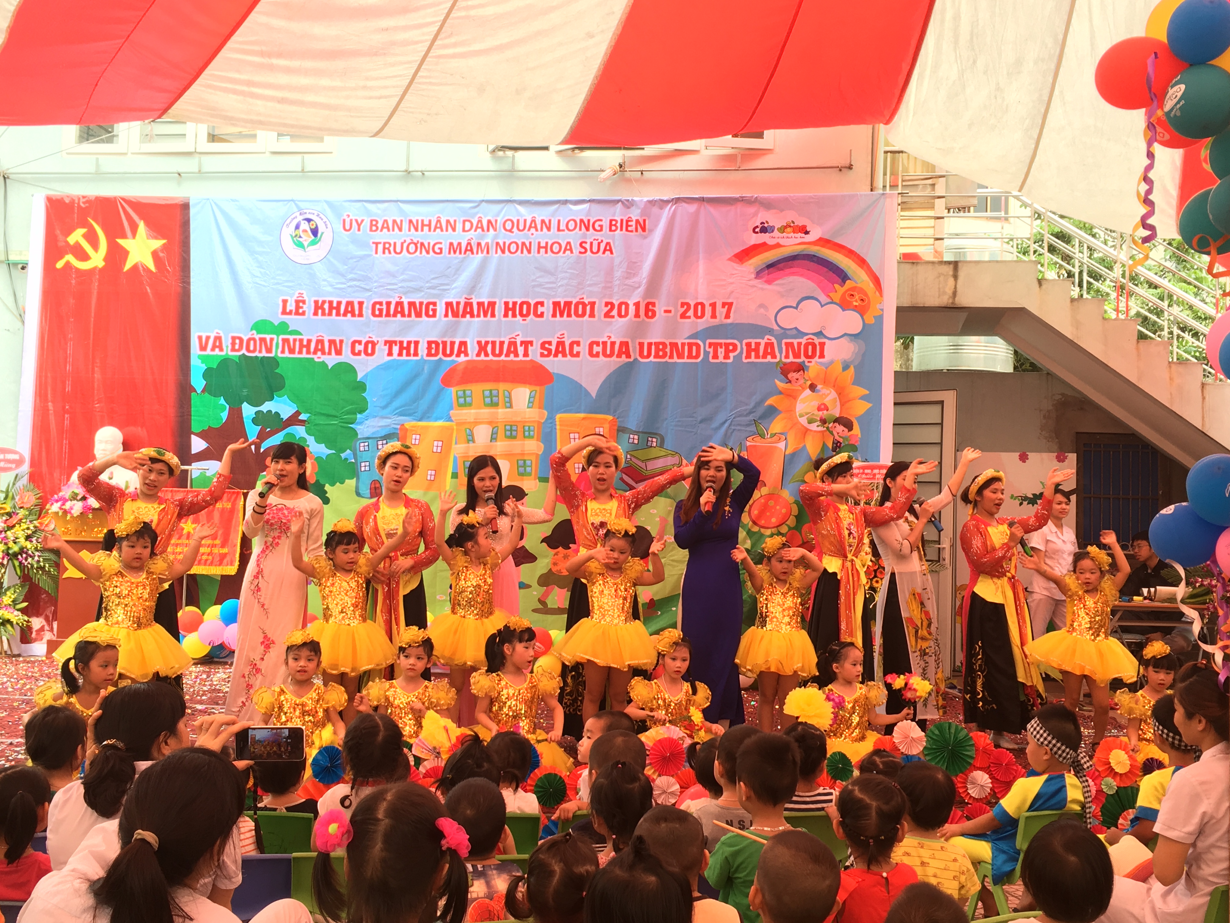 Lễ khai giảng diễn ra trang trọng, ngắn gọn, nhưng đã trở thành kỷ niệm sâu sắc, đáng nhớ của cô và trò trường mầm non Hoa Sữa, hứa hẹn một năm học mới 2016-2017 nhiều thành công.