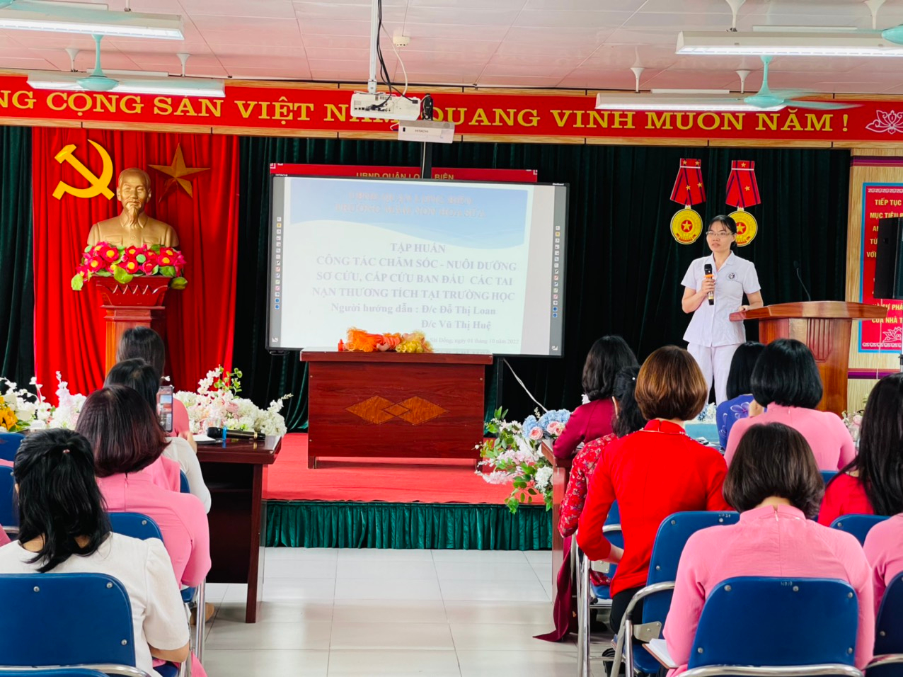 Hôm nay, ngày 01/10/2022 Trường Mầm Non Hoa Sữa tổ chức buổi tập huấn “phòng chống tai nạn thương tích” trong trường mầm non.
