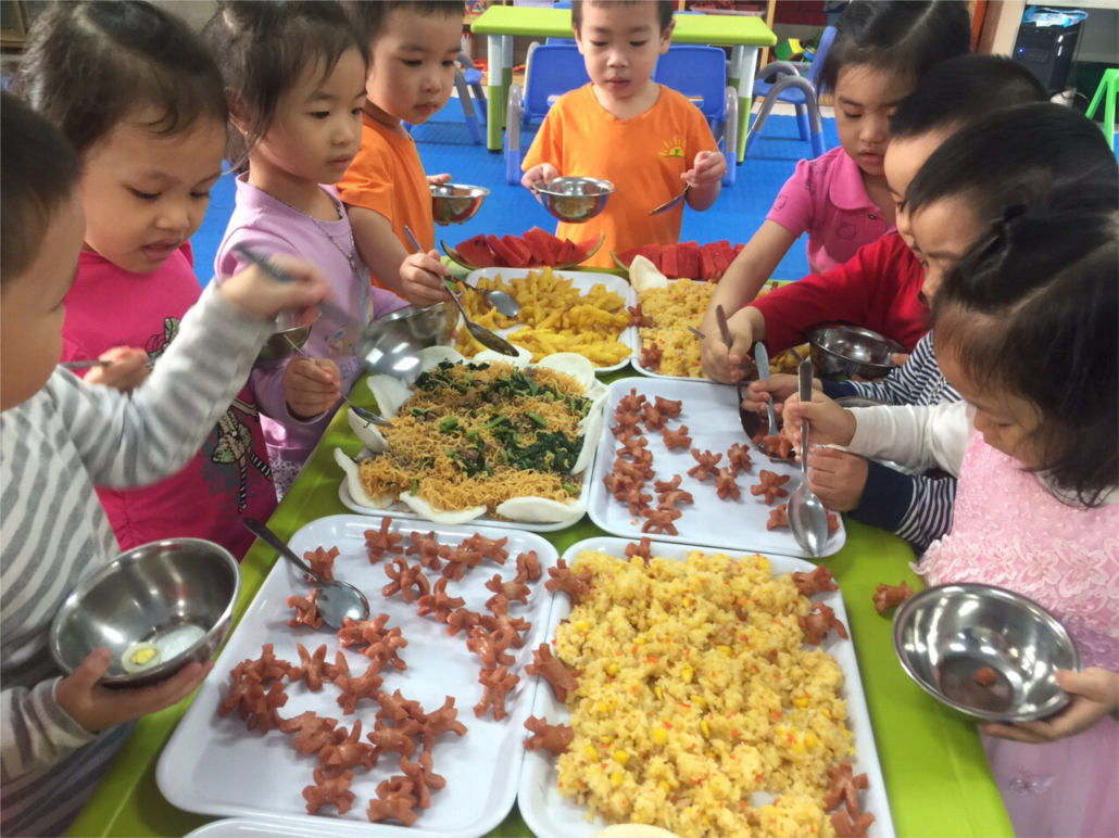 Qua bữa tiệc buffet các bé còn được học thêm về văn hóa xếp hàng chờ đến lượt mình, không chen lấn, tranh giành hoặc lãng phí thức ăn với các bạn khác.