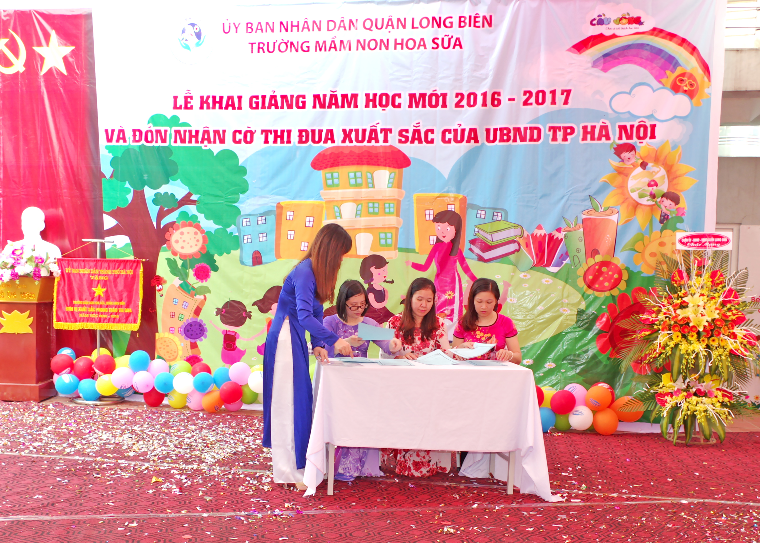 Ngày 5/9, đại diện các đoàn thể nhà trường lên ký cam kết "Thực hiện trật tự văn minh đô thị trường học" năm học 2016-2017 và Thực hiện phong trào thi đua "An toàn thực phẩm" năm học 2016-2017