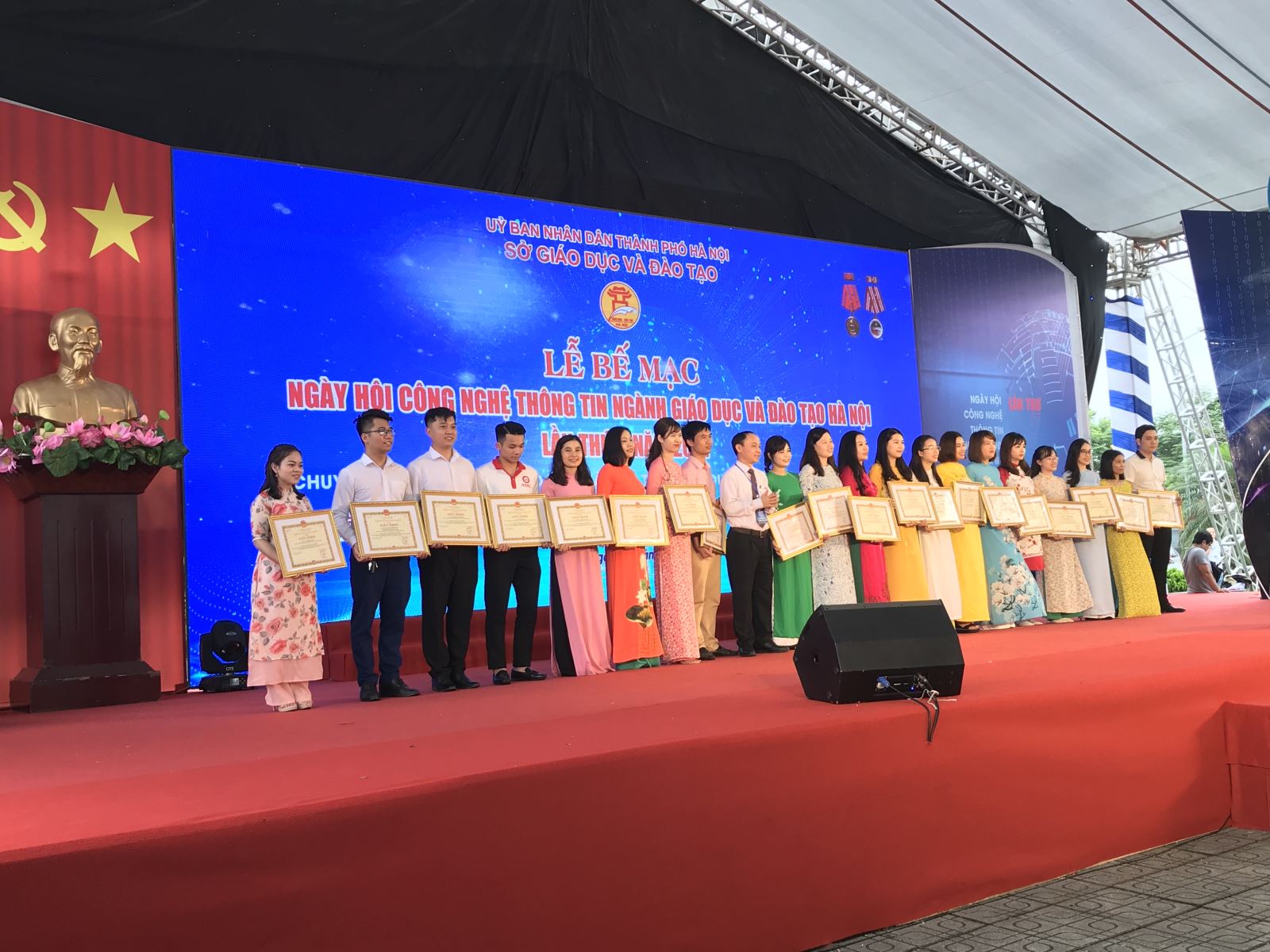 Trong không khí tưng bừng của ngày hội với các tiết mục văn nghệ đặc sắc tại sân khấu chính là các gian hàng CNTT đến từ các quận, huyện được bố trí sắp xếp trưng bày giới thiệu sản phẩm CNTT với các phần mềm và ứng dụng CNTT trong dạy học từ các nhà trường. Tham quan triển lãm, CBGVNV nhà trường đã tới từng gian hàng và cùng tham gia trải nghiệm một số phần mềm được giới thiệu trong các gian hàng, trong đó có gian hàng CNNT của quận Long Biên đã thu hút sự quan tâm chú ý của các quý vị đại biểu và khách tham quan đến trải nghiệm với gian hàng.