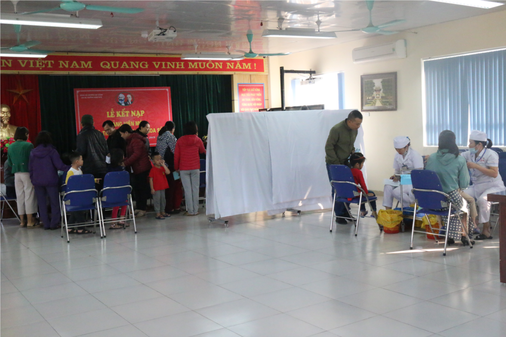 Đúng 07 giờ 30 phút, hầu hết các bậc phụ huynh, giáo viên phụ trách, nhân viên y tế, đại diện ban giám hiệu nhà trường và các cán bộ Y tế phường Sài Đồng đã có mặt đông đủ. Chiến dịch tiêm phòng diễn ra 03 giai đoạn theo đúng qui định của ngành Y tế, gồm: Khám sàng lọc, tổ chức tiêm và theo dõi sau tiêm.