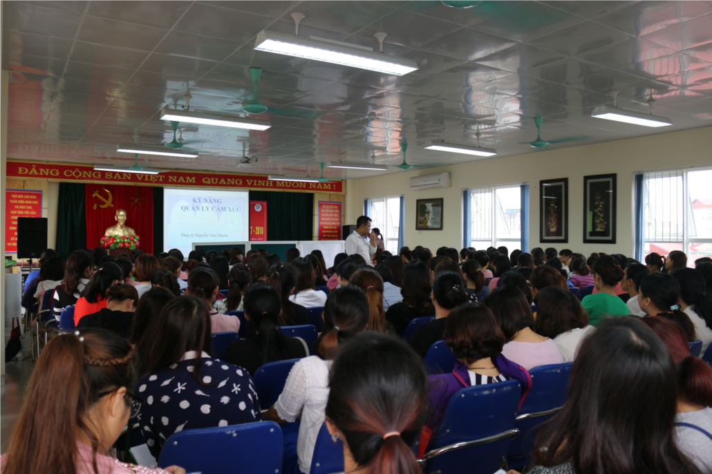 Cách ứng xử khéo léo của người giáo viên trong giao tiếp đóng vai trò quan trọng và tác động trực tiếp đến việc hình thành nhân cách của trẻ. Mọi tình huống trong giao tiếp với trẻ đều đỏi người giáo viên đứng lớp phải biết linh hoạt, khéo léo và am hiểu biết sâu sắc về đặc điểm tâm sinh lý của từng trẻ. Từ thực tế đó, BGH trường mầm non Hoa Sữa đã tổ chức lớp tập huấn kỹ năng “Kỷ luật không nước mắt và Kỹ năng quản lý cảm xúc "cho CBGVNV.