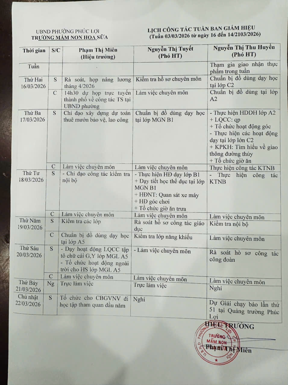 Lịch BGH tuần 3 tháng 3 năm 2026.
